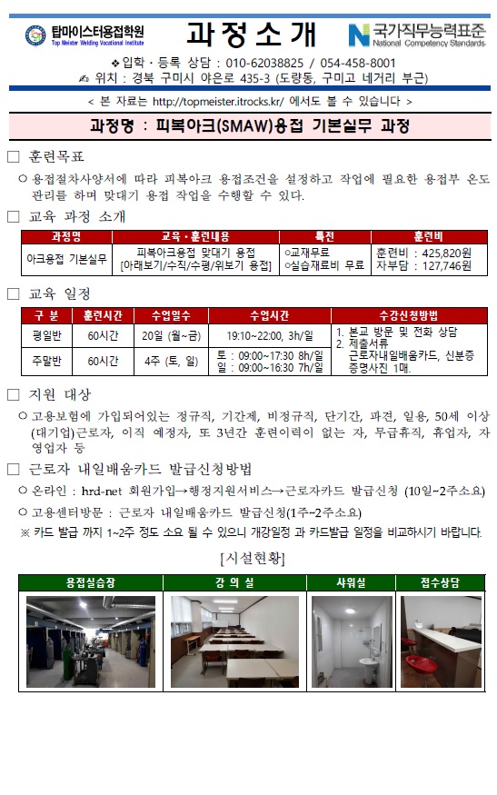 피복아크용접 기본실무 (주말) [재직근로자]